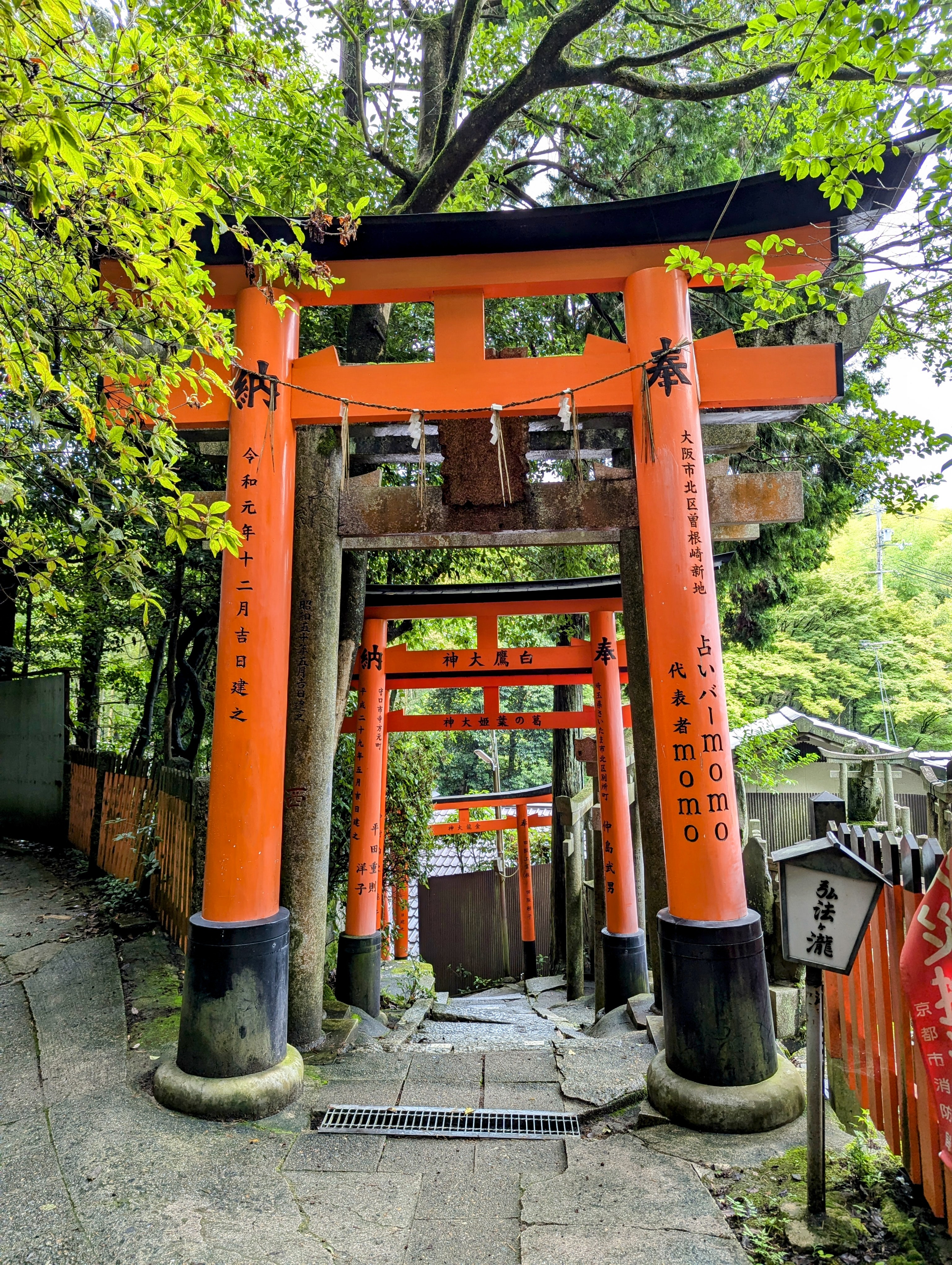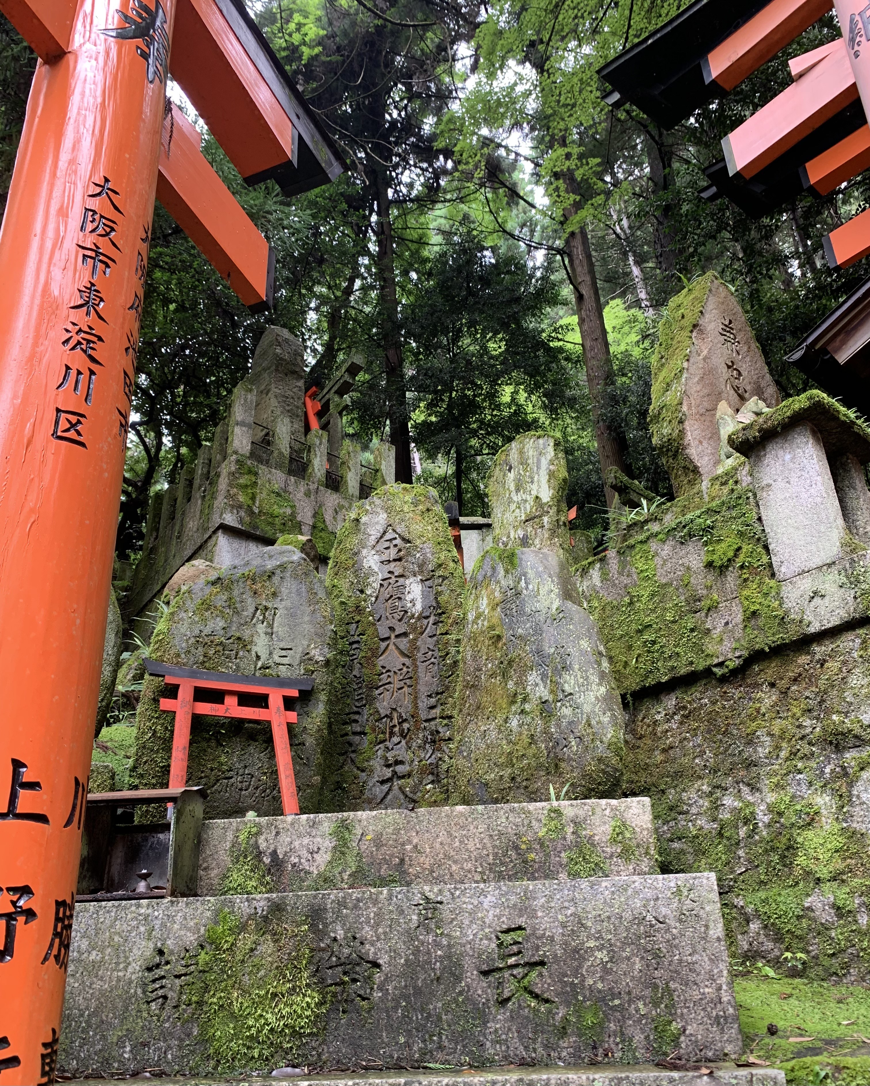 Finally, one might make the mistake of taking a wrong turn and adding 10,000 steps up a VERY steep hillside covered in shrines when you are hitting the end of your endurance and hydration. Be careful as you approach Suehiro Okami. There’s a stump or maybe a large rock with what might be a misleading sign. My memory of this is not great – I think I was hitting some dehydration issues at this point – and we didn’t take a picture of it. Luckily some other tourists came along when we were up the hill who had made the same mistake and were working out how to backtrack and get back on the regular trail. We almost died but then we followed them and we lived.