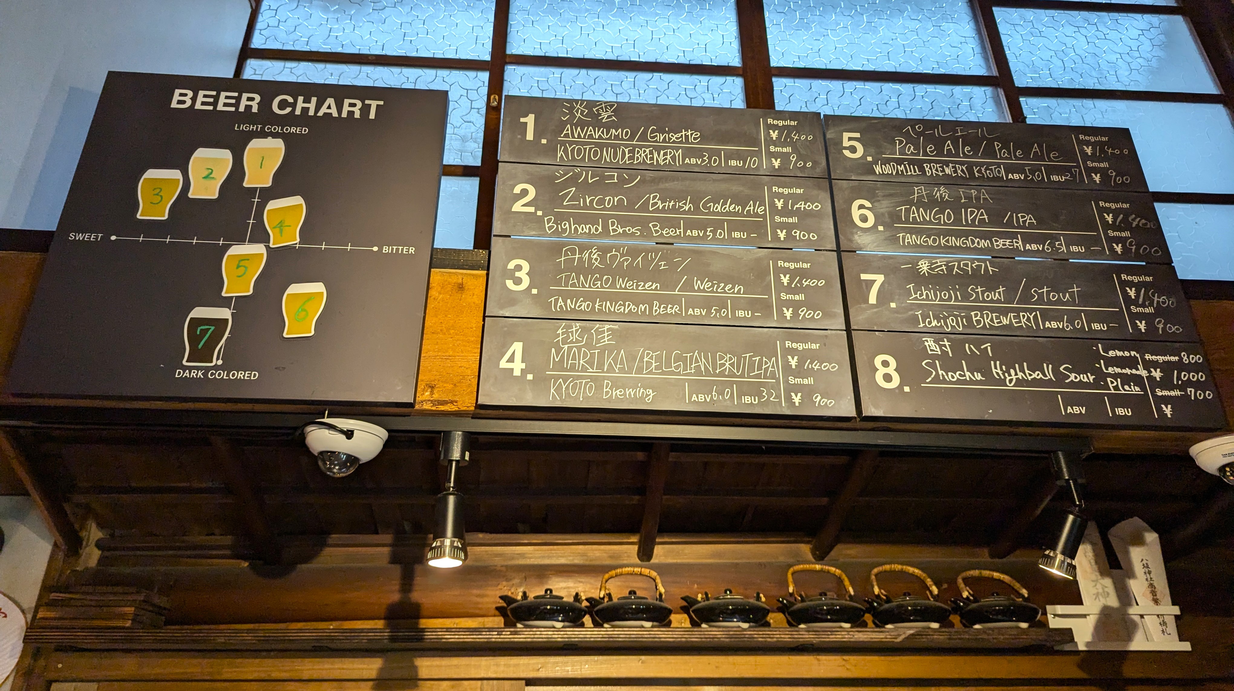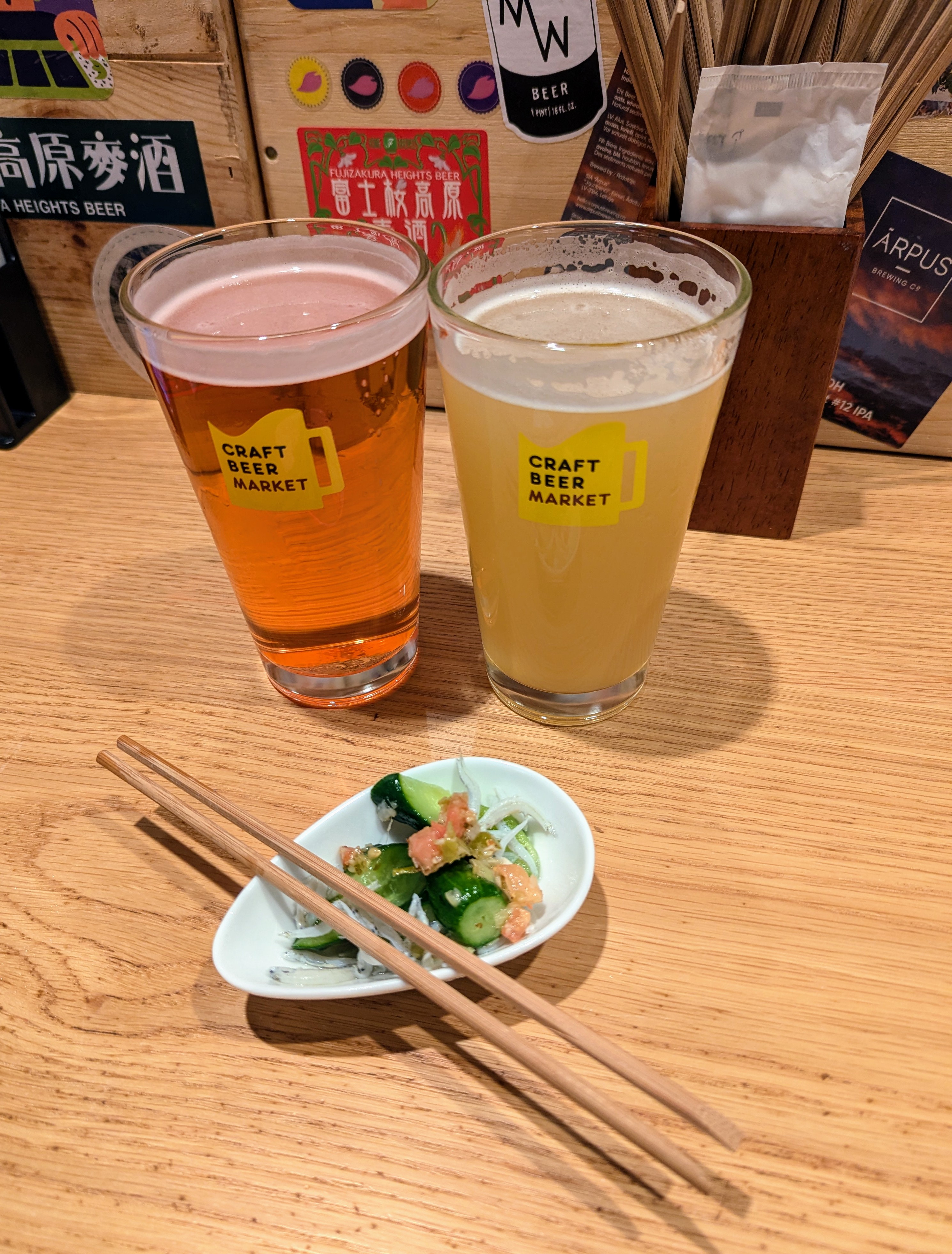 Thanks to our nutritious snacks we found the cognitive capacity to take transit back to Kyoto Station. There we found our way to a place called Craft Beer Market (weird) that had a great selection. They sat us on the tallest stools ever facing a wall but also gave us little snacks so I forgave them.