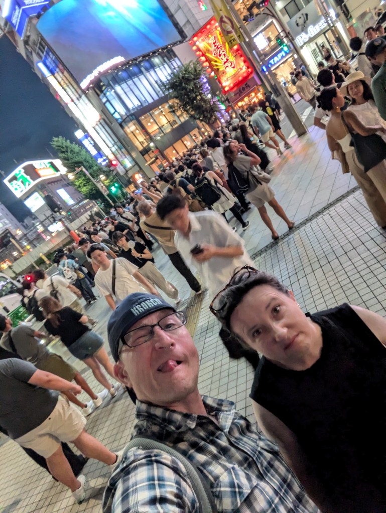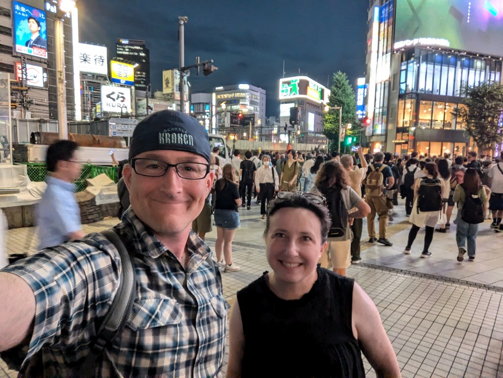 Around 11:00 am we headed to Shibuya to do some more neighborhood exploring and check an item off our planned to do list before meeting our tour. I had heard in a YouTube video that buying prescription glasses in Japan was affordable, quick, and easy so we had been planning all along for each of us to get a pair or two on this trip. I had picked the JINS location in Shibuya as our primary target as online reviews indicated people had shortest turnaround time at that store. On this day I found frames at JINS that I liked, but their wait time for an exam was a couple of hours and we had that tour later that would interfere with that timeline. We went into another eyeglass shop nearby called Zoff and Scott found a good pair of glasses that were a nice blend of modern and classic. He got in for an exam immediately and he said it was the most thorough exam he had ever had. His glasses were ready to pick up about an hour later. And only $50 for exam, frames, lenses, and their standard fast service!